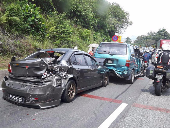 Bas persiaran yang merempuh 10 kenderaan di Kilometer 265.8 Lebuhraya PLUS arah selatan selepas Terowong Menora petang semalam dikesan...